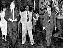 Prime Minister Lee Kuan Yew, S. Rajaratnam and Shaw Vee Tzan tour the Great World Singapore Natiuonal Economic Development Fair, 1960