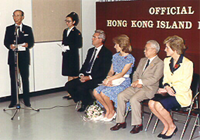 The late Princess of Wales with Run Run opening the divisional headquarters of the Hong Kong Red Cross, 1989