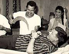 P.Ramlee clowning around with Benny Hill at Jalan Ampas studio, 1960