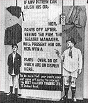 Another was the very unusual promotion for 'Laural and Hardy's laughing 20s' (1965) at the Lido which offered patrons 50 style of pants if they managed to 'laugh their pants off' during the screening.
