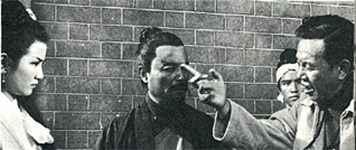 Chang Cheh (right) on the set of Flying Dagger 1968